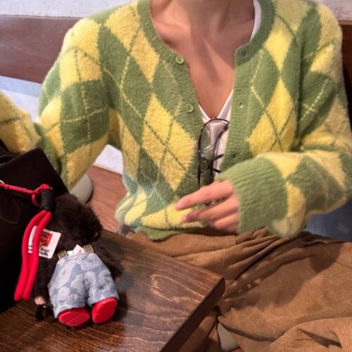 ❄️ 學院風氣質菱格紋針織開衫